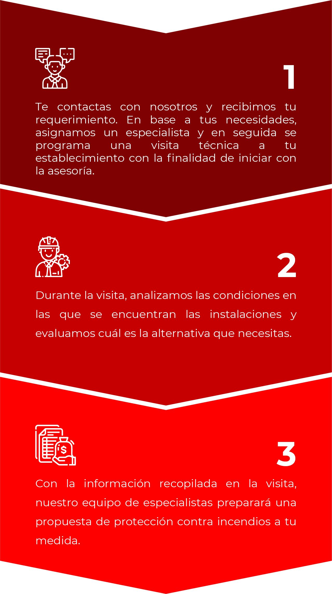Entendemos que cada cliente y establecimiento tiene necesidades únicas. Por eso, te ofrecemos un servicio personalizado y adaptado a tus requerimientos específicos. ¡Contáctate con nosotros para gozar de la tranquilidad de contar con una PROTECCIÓN CONTRA INCENDIOS A TU MEDIDA!